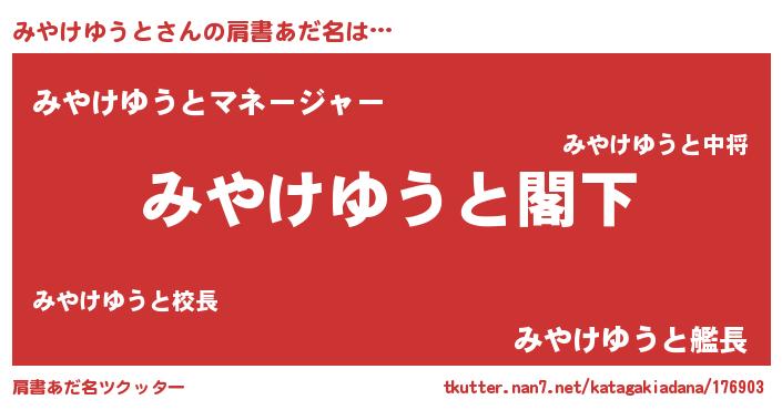 | 意味不明あだ名 | 『自称みやけゆうと』 |