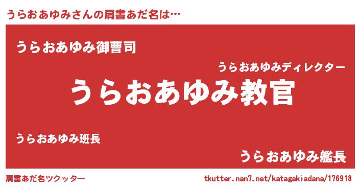 | 男性向けラノベタイトル風あだ名 | 『この素晴らしい世界にうらおあゆみを!』 |