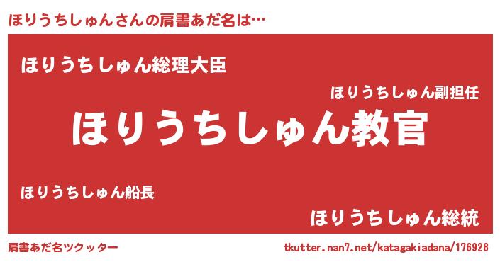 | 意味不明あだ名 | 『住所不定無職ほりうちしゅん(68歳)』 |