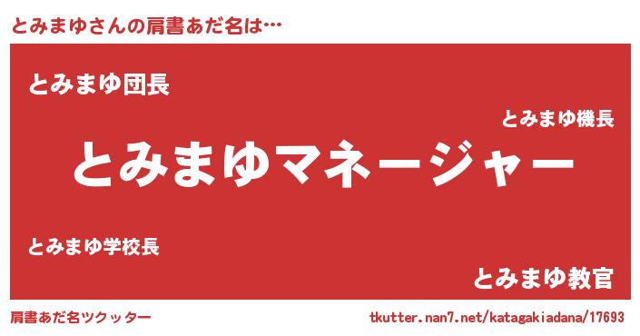 | 男性向けラノベタイトル風あだ名 | 『とみまゆに滅ぼされるだけの簡単なお仕事です』 |