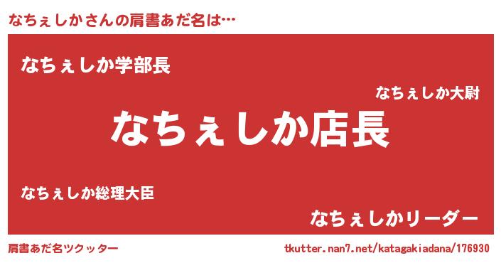 | 女子向けラノベタイトル風あだ名 | 『なちぇしか姫と円卓の騎士』 |