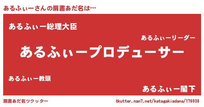 | 男性向けラノベタイトル風あだ名 | 『あるふぃーに滅ぼされるだけの簡単なお仕事です』 |
