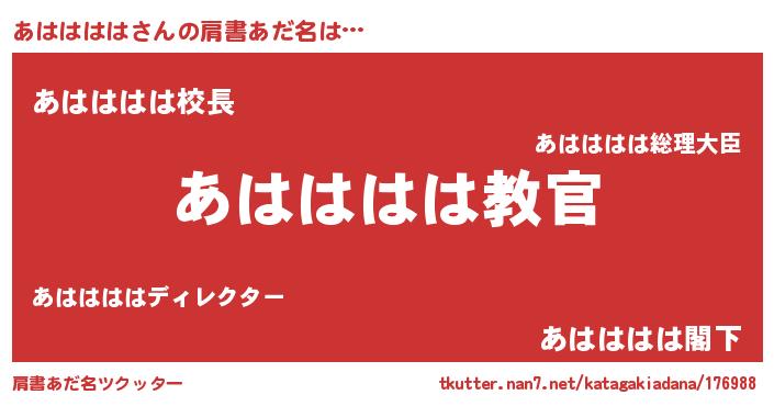 | ヒーロー風カッコイイあだ名 | 『仮面アハダー』『ネオアハハハハ』 |