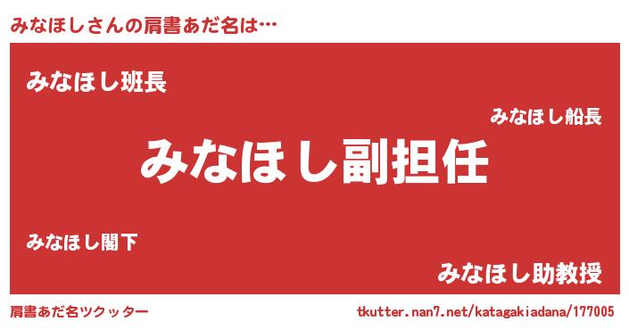 | ヘコむあだ名 | 『みなほし(遠い目)』『みなを』 |