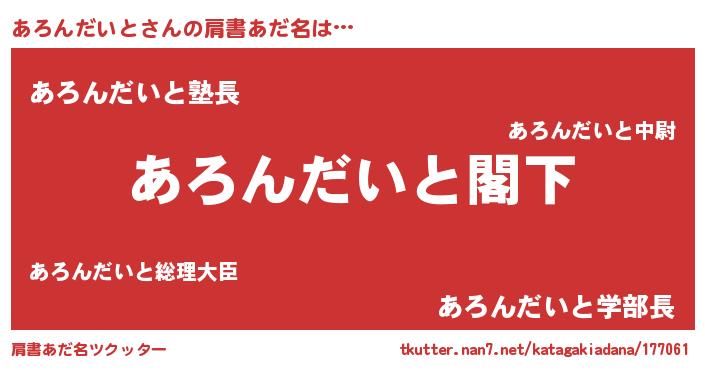 | ヘコむあだ名 | 『あろお』『なまこ酢』『あろにー』 |