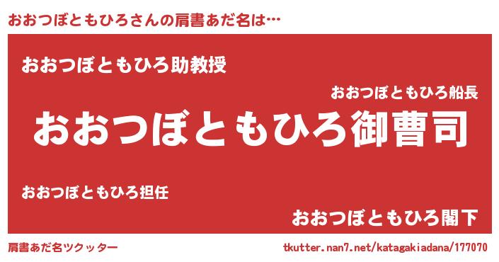 | 胡散臭い通販商品みたいなあだ名 | 『必ず成功する霊験あらたかなお札…その名も「おおつぼともひろ」』 |