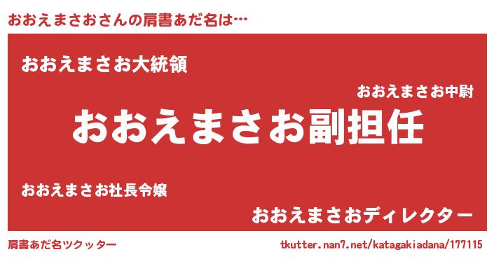 | 女子向けラノベタイトル風あだ名 | 『おおえまさおの契約王妃』 |