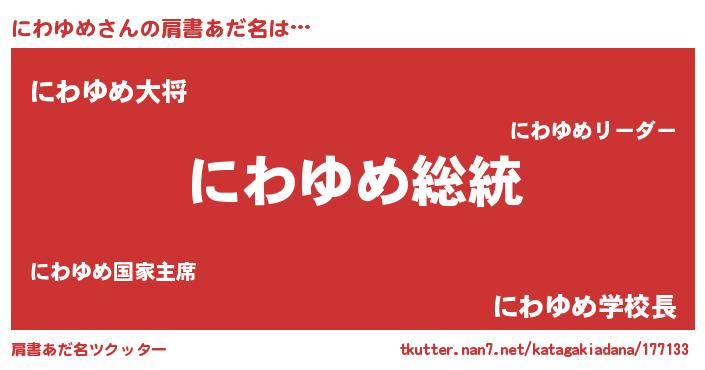 | 意味不明あだ名 | 『自称にわゆめ』『つくし科にわゆめ属』 |