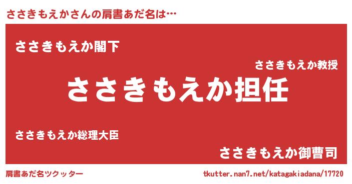 | ヘコむあだ名 | 『ささきもえか(苦笑)』『ささふぇ~』 |