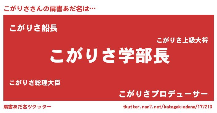 | ヒーロー風カッコイイあだ名 | 『正義の使者こがりさ』『幻影騎士コガ』 |