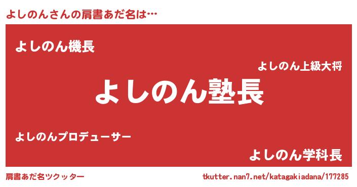 | 欧米人風あだ名 | 『ウサインよしのん』『ダニエルよしのん』 |