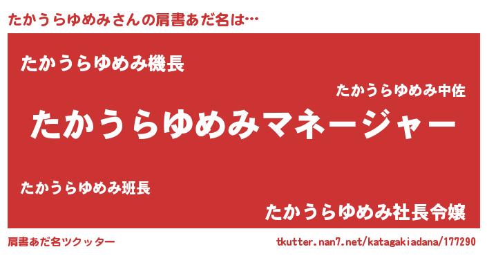 | 胡散臭い通販商品みたいなあだ名 | 『必ず成功するブレスレット…その名も「たかうらゆめみ」』 |