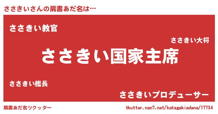 | 意味不明あだ名 | 『ささきいフォーエバー』『自称ささきい』 |