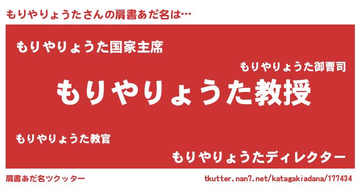 | 男性向けラノベタイトル風あだ名 | 『おまえをオタクにしてやるから、俺をもりやりょうたにしてくれ! 』 |