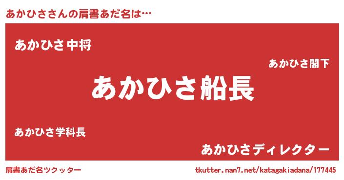 | 欧米人風あだ名 | 『あかひさ・ステッグマイヤー』 |