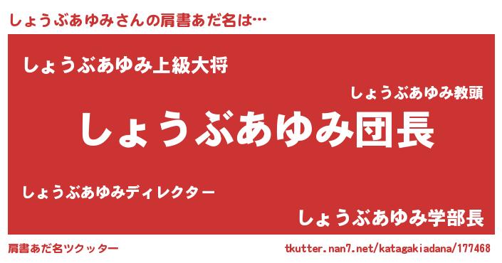 | 意味不明あだ名 | 『とにかく怪しいしょうぶあゆみ』 |