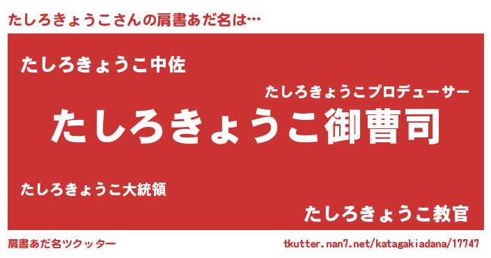 | 女子向けラノベタイトル風あだ名 | 『たしろきょうこ姫と円卓の騎士』 |