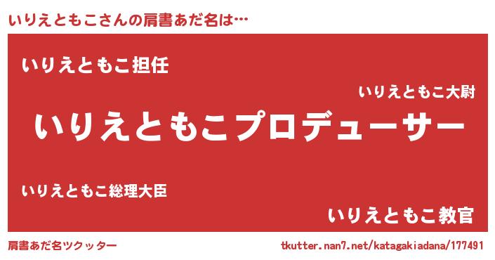 | 意味不明あだ名 | 『永久保存いりえともこ』 |