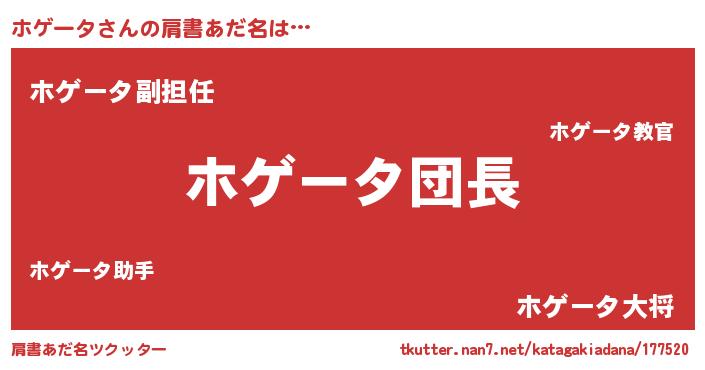 | ヘコむあだ名 | 『ホゲを』『ホゲータ(遠い目)』 |