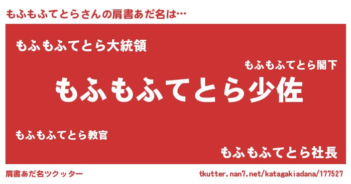 | ヘコむあだ名 | 『なまこ酢』『もふっふぃ~』 |