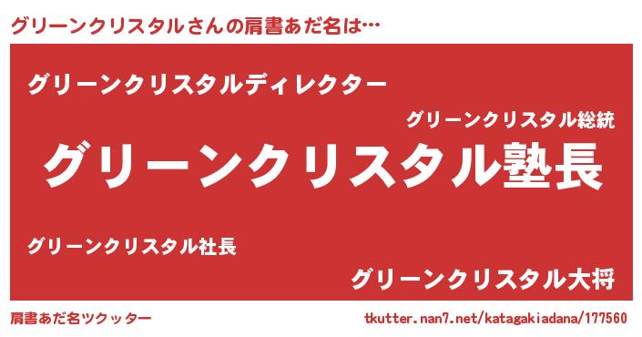 | 意味不明あだ名 | 『とにかく怪しいグリーンクリスタル』 |