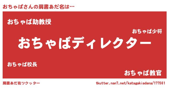 | 男性向けラノベタイトル風あだ名 | 『はたらくおちゃばさま!』 |