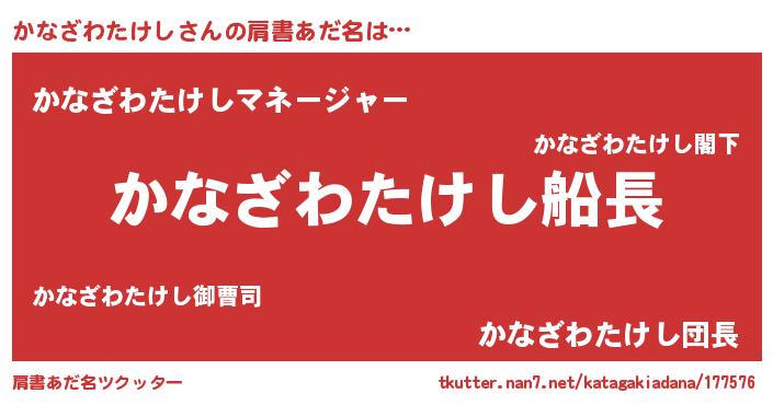 | 意味不明あだ名 | 『とにかく怪しいかなざわたけし』 |