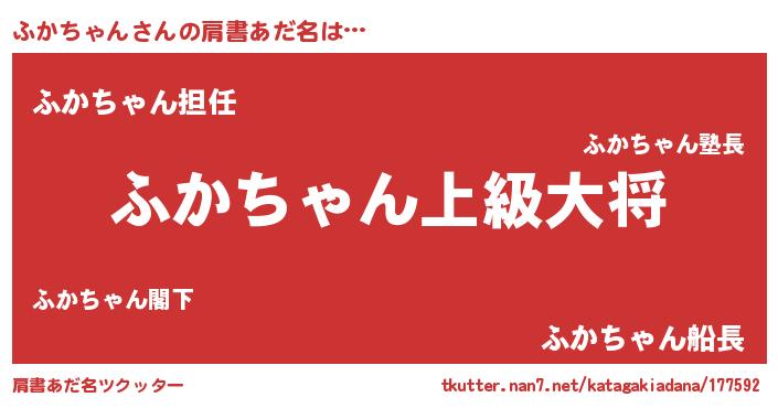 | ヘコむあだ名 | 『ふかちゃん(遠い目)』『ふかっぺ』 |