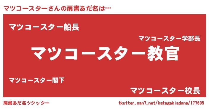 | ヒーロー風カッコイイあだ名 | 『仮面マツダー』『ネオマツコースター』 |