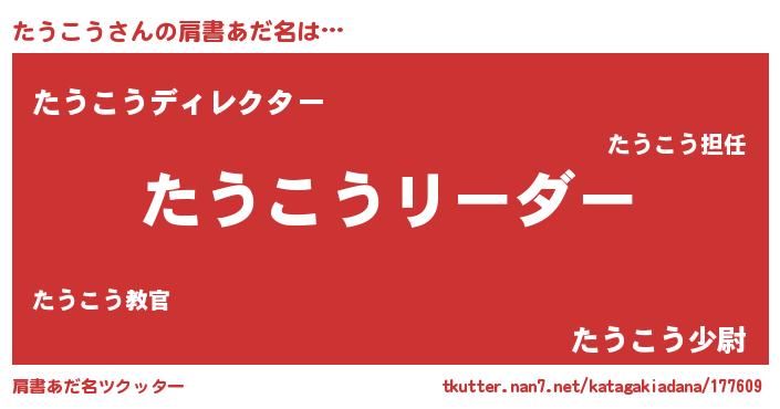 | ヘコむあだ名 | 『たうぷりん』『たうこう(笑)』 |
