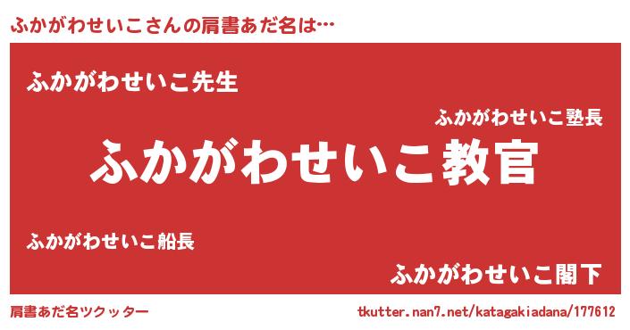 | ヘコむあだ名 | 『ふかがわせいこ(笑)』『ふかお』 |