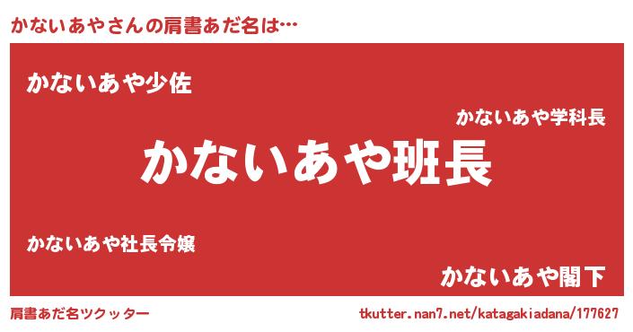 | 女子向けラノベタイトル風あだ名 | 『かないあやの卵を拾いまして』 |