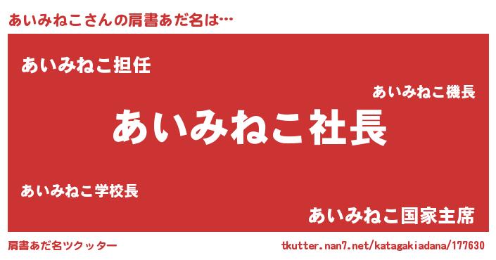 | 男性向けラノベタイトル風あだ名 | 『あいみねこの憂鬱』 |