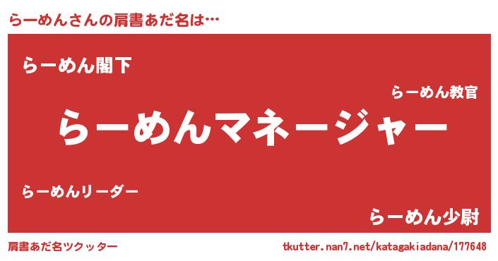 | 男性向けラノベタイトル風あだ名 | 『らーめんに滅ぼされるだけの簡単なお仕事です』 |