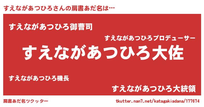 | ヒーロー風カッコイイあだ名 | 『スーパースエナガアツヒロ』 |