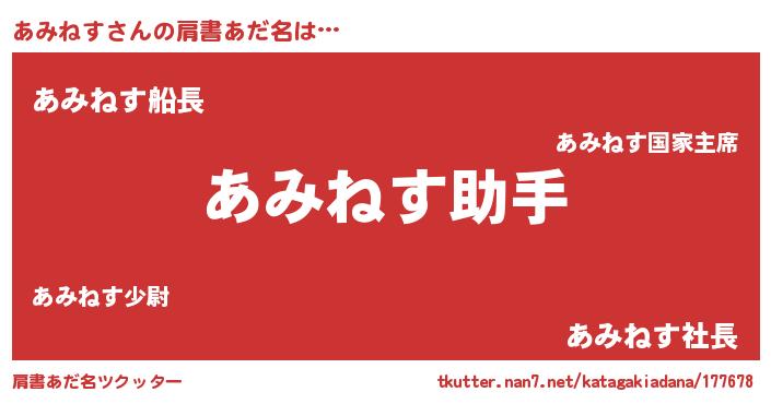 | ヒーロー風カッコイイあだ名 | 『慈愛の使者あみねす』『魔戒騎士アミ』 |