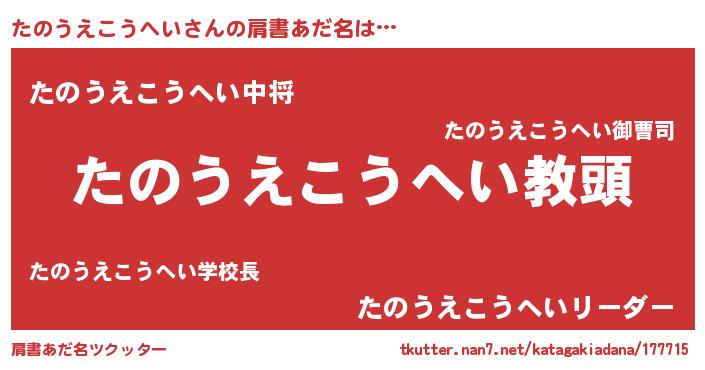 男性向けラノベタイトル風あだ名 | 『たのうえこうへいという概念が存在しない退屈な世界 』 |
