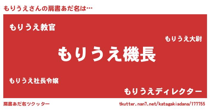 | 欧米人風あだ名 | 『もりうえ・ステッグマイヤー』 |