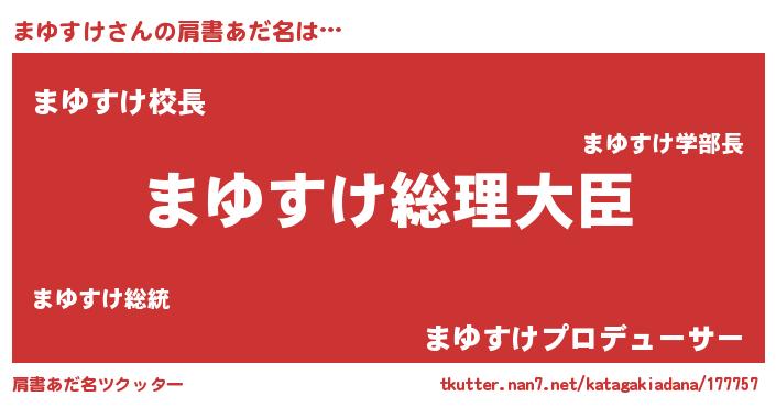 | 男性向けラノベタイトル風あだ名 | 『やはりまゆすけの青春ラブコメはまちがっている 』 |
