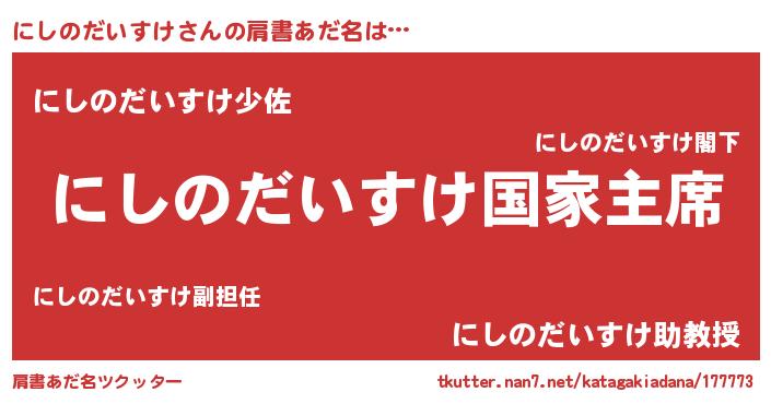 | 意味不明あだ名 | 『にしのだいすけフォーエバー』 |