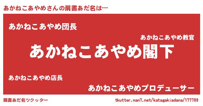 | 意味不明あだ名 | 『自称あかねこあやめ』 |