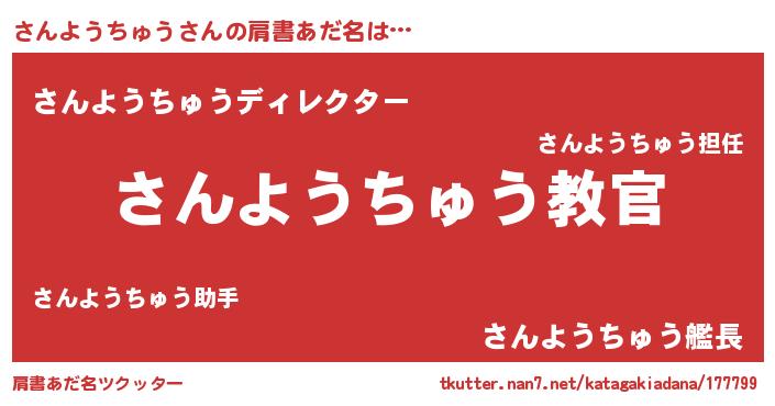 | 男性向けラノベタイトル風あだ名 | 『この素晴らしい世界にさんようちゅうを!』 |