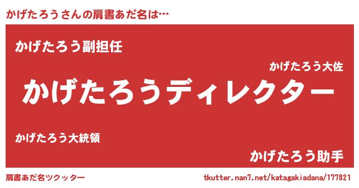 | 胡散臭い通販商品みたいなあだ名 | 『来世でも幸せになれる健康食品…その名も「かげたろう」』 |