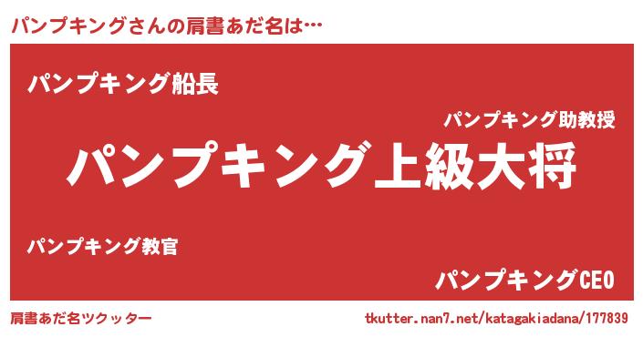 | 男性向けラノベタイトル風あだ名 | 『転生したらパンプキングだった件』 |