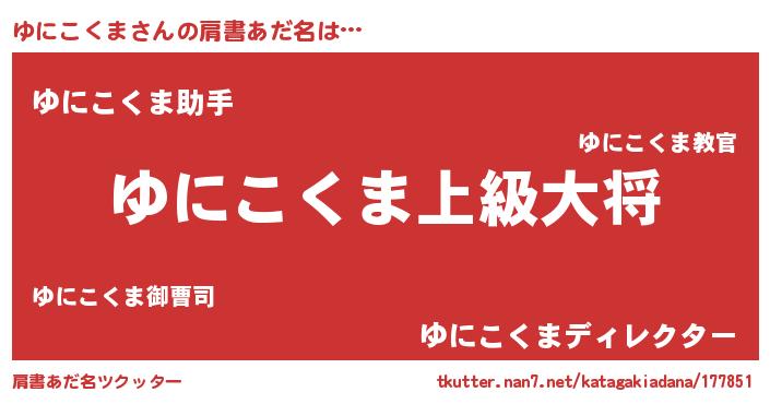 | 男性向けラノベタイトル風あだ名 | 『ゆにこくま~年齢イコール彼女いない歴の魔法使い~』 |