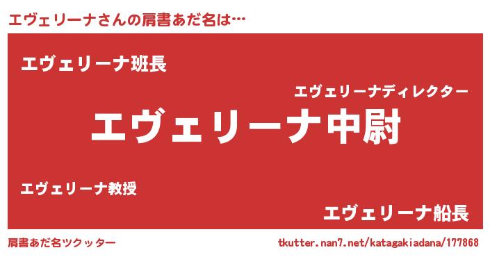 | 男性向けラノベタイトル風あだ名 | 『エヴェリーナスレイヤー』 |