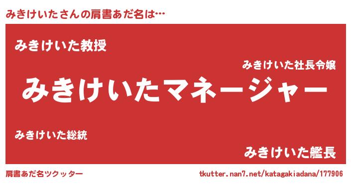 | 男性向けラノベタイトル風あだ名 | 『はたらくみきけいたさま!』 |