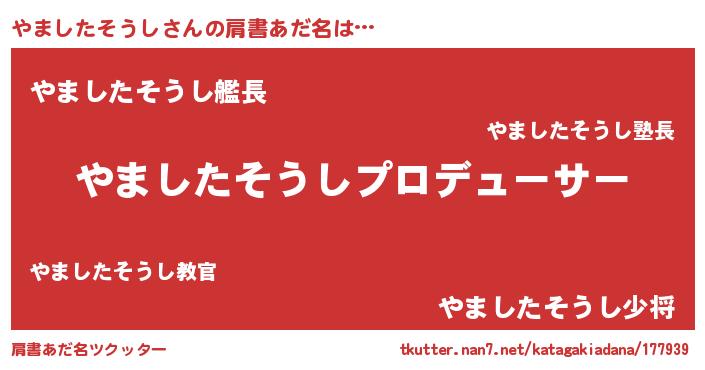 | 男性向けラノベタイトル風あだ名 | 『やましたそうしに滅ぼされるだけの簡単なお仕事です』 |