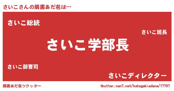 | 欧米人風あだ名 | 『ダニエルさいこ』『ケンブリッジさいこ』 |