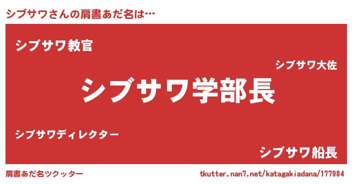 | 男性向けラノベタイトル風あだ名 | 『おまえをオタクにしてやるから、俺をシブサワにしてくれ! 』 |